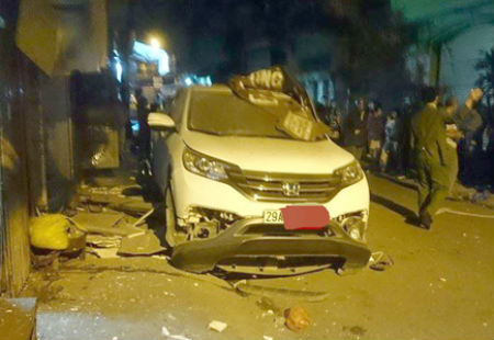 Tại hiện trường, một chiếc xe bị hư hỏng nặng, cửa kính của người dân gần hiện trường bị sức ép của vụ nổ khiến cửa kính bị vỡ, người dân hoảng loạn sau tiếng nỗ vang trời.
