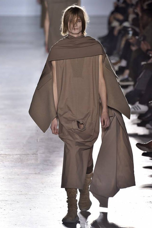 Trong tuần lễ thời trang nam diễn ra tại Paris, Pháp hôm 22/1 vừa qua, Rick Owens, nhà thiết kế chuyên về đồ Grunge thể thao, đã đưa những người mẫu lên sàn diễn với những bộ đồ không che phần nhạy cảm.