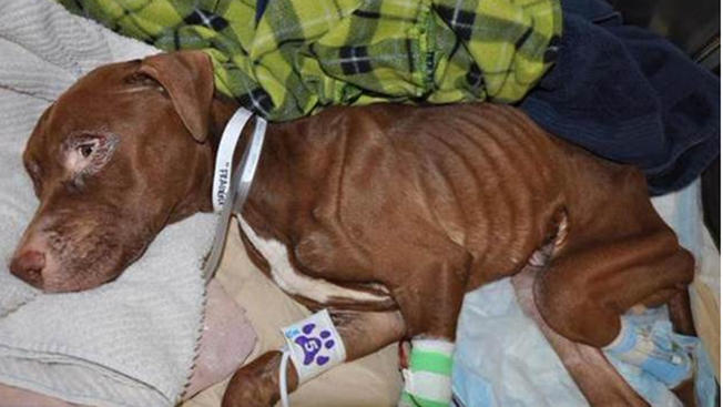 Chú chó bị bỏ rơi này là một con Pitbull khoảng một tuổi. Hội Phòng chống Tàn ác với Động vật đã chăm sóc chú chó kể từ khi chú được đưa tới đây.