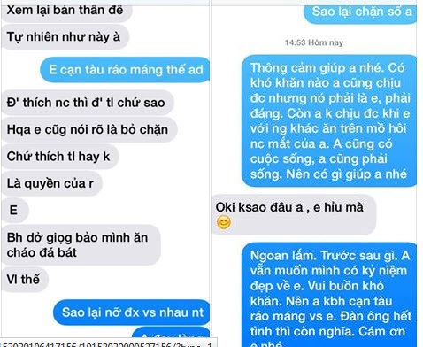 Anh có thể chịu mọi khổ nhục để kiếm đồng tiền về cho em, nhưng N à, anh không thể chịu được em và người khác ăn trên mồ hôi nước mắt của anh. Anh không đòi bất kỳ thứ gì từ em, nhưng anh phải lấy lại những gì bố mẹ em nợ anh! 6 năm yêu nhau gia đình thừa biết. Nhưng một khi em đã thay lòng thì bố mẹ em cũng đổi dạ với a luôn. A hiểu bố mẹ nào rồi cũng bênh vực con. Anh không trách gì bố mẹ em, chỉ trách anh đã mải mê kiếm tiền, đã để em phải đi làm PG.