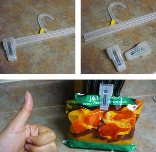 Dùng móc kẹp quần áo để giữ bim bim, bánh, kẹo không bị ỉu.