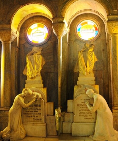 Hai ngôi mộ tượng trưng của vợ chồng Huyện Sĩ trong nhà thờ Huyện Sỹ.