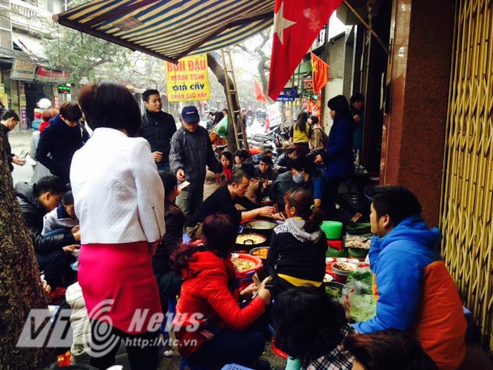 Khách ngồi chật kín vỉa hè tại quán bún đậu trên đường Đại La