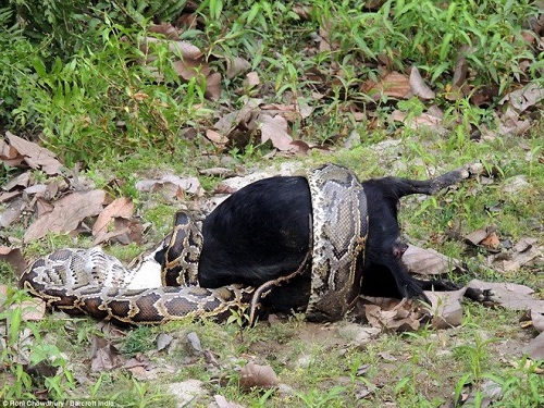 Cuộc săn mồi của con trăn khổng lồ khiến cả làng Garkhuta, Tây Bengal, Ấn Độ sợ chết khiếp. Trong vài tích tắc, nó đã nuốt trọn con dê lớn vào trong bụng và trườn dần đi!