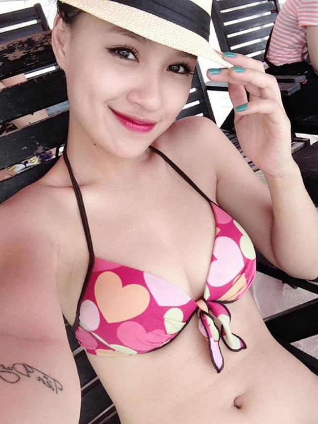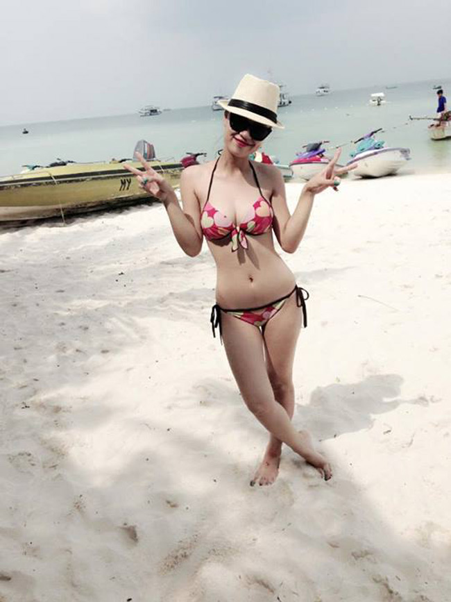 Trong trang phục bikini, cùng chiếc tai nghe quen thuộc, nữ DJ càng thêm bốc lửa và cá tính.