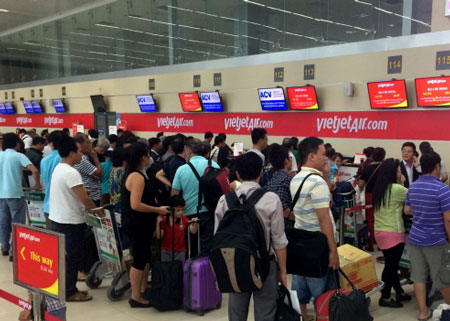 Khu vực làm thủ tục bay của Vietjet Air tại sân bay Nội Bài