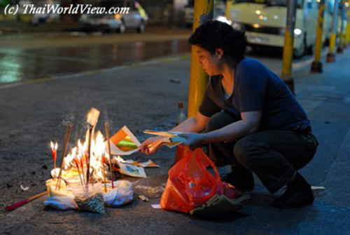 Giống với quan niệm của người Việt, họ đốt giấy tiền, vàng mã để cúng cho những cha mẹ, ông bà đã khuất.