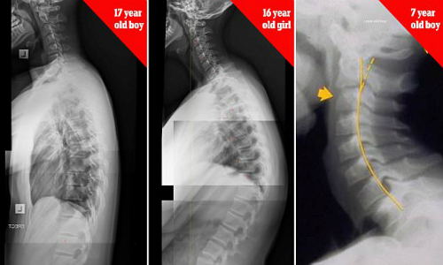 Nhiều phụ huynh khi thấy con em dùng điện thoại chỉ quan tâm liệu trẻ có xem các nội dung không phù hợp mà không nhắc nhở về tư thế ngồi. Chuyên gia trị liệu cột sống là tiến sĩ James Carter (Australia) cảnh báo trẻ em 7 tuổi có thể bị gù lưng, cong vẹo cột sống do sử dụng smartphone và tablet quá nhiều. Hội chứng được gọi là "chiếc cổ nhắn tin" đang gia tăng một cách đáng báo động.