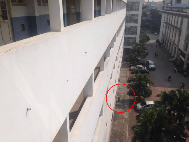 Vào thời điểm trên, nhiều sinh viên có mặt tại trường nghe thấy một tiếng động lớn ở dưới sân trường. Nhiều người chạy ra thì thấy một người phụ nữ đang nằm sõng soài bên cạnh chân tòa nhà H1. Người phụ nữ nằm bất động. Ngay sau đó, sực việc được báo cho bảo vệ nhà trường và cơ quan chức năng.