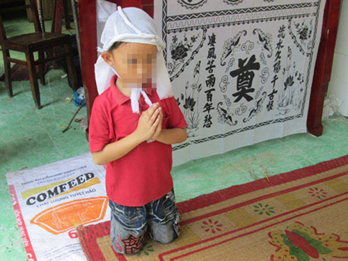 Lặng đi giữa căn nhà tràn ngập nỗi đau thương, hình ảnh cháu bé 8 tuổi quỳ trước bàn thờ của anh Trung đã khiến chúng tôi không khỏi nghẹn ngào. Hỏi nhiều người thân của nạn nhân thì được biết đó chính là cháu Nguyễn Duy K. (con trai duy nhất của vợ chồng anh Trung).
