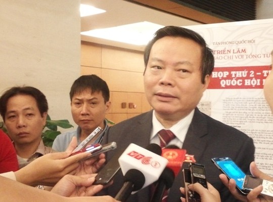 Chủ nhiệm Ủy ban Tài chính - Ngân sách của Quốc Hội Phùng Quốc Hiển trả lời báo chí bên hành lang Quốc hội