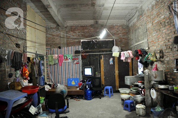 Trao đổi với chúng tôi, anh Bình cho biết: "Chủ căn biệt thự này là người Quảng Ninh, do quen biết nên ông chủ đã cho hai vợ chồng ở trong căn biệt thự từ năm 2009". Do tâm lý không phải nhà của mình nên tất cả những vật dụng anh chị mua sắm đều khá giản đơn, thậm chí tạm bợ. Ở tầng 1 có khoảng 4 phòng anh chị dùng để làm 2 phòng ngủ, số còn lại để sử dụng vào các công năng khác như: bếp, vệ sinh, bán hàng.