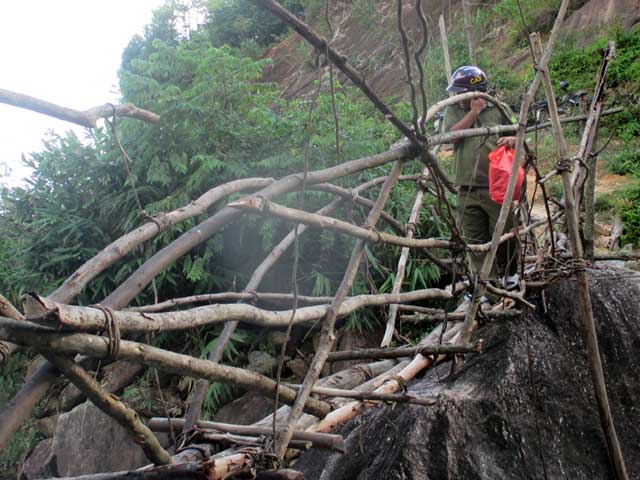Ông Hồ Văn Kiu (39 tuổi), bộc bạch: "Chúng tôi chỉ qua lại được trên cây cầu này vào mùa nắng, nước cạn. Chứ khi mưa lớn, nước suối lên cao là "cầu" bị cuốn trôi, phải chờ nước cạn mới ra làm lại được. Vì vậy vào mùa mưa lũ, người dân ở đây bị cô lập vài ba chục ngày là bình thường".