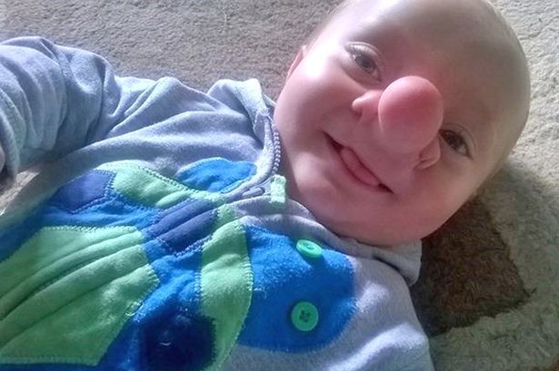 Em bé đáng yêu này bị mắc một căn bệnh hiểm nghèo hiếm gặp khiến nhiều người xót xa. Não của cậu bé Ollie Trezise đến từ Anh lại bỗng dung phát triển ở trên mũi khiến cho khuôn mặt bị biến dạng. Đây là căn bệnh rất hiếm và cậu bé cần phải được thực hiện rất nhiều ca phẫu thuật nữa mới có thể trở lại cuộc sống bình thường.