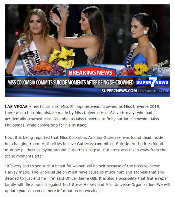 Shock nặng: Hoa Hậu hoàn vũ bị trao nhầm vương miện đột nhiên tự tử gây choáng váng cộng đồng mạng