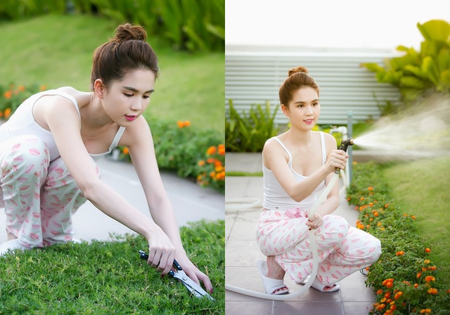 Mặc dù nhà có tới 2 người giúp việc nhưng Ngọc Trinh vẫn muốn tự tay được chăm chút cho tổ ấm của mình. Cô thường trực tiếp cắt tỉa cây cảnh và chăm sóc đàn cá trong nhà.