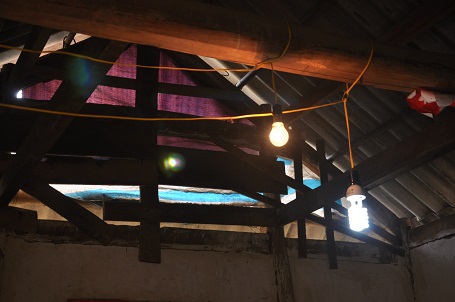 Phòng học là nhà bếp, đến chỗ sân chơi của các bé cũng chỉ là dưới gầm nhà sàn với diện tích khoảng 60 mét vuông nhưng có đến tận 20 cái cột nhà. Tuy vậy điều đáng lo ngại đó là các cột gỗ đều đã bị mối mọt, xộc xệch nên phải kê từ 2 đến 3 viên gạch. Phần sàn nhà bên trên với những khoảng trống rộng hoác, không đều nhau, chi chít những đinh gán, ghép bởi nhiều mảnh đã vỡ.