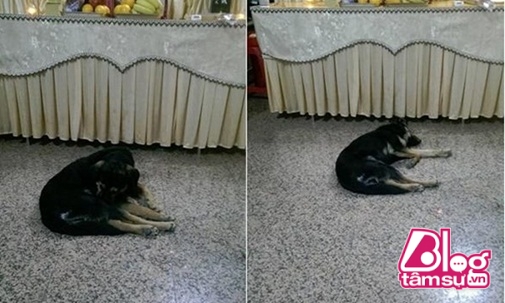 Có lẽ vì cảm nhận được từ nay về sau sẽ không còn gặp được chủ nhân nữa nên chú chó nằm xuống trước linh đường của người chủ và khóc.