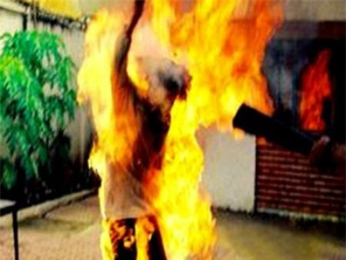 Ngay lập tức ngọn lửa bùng lên dữ dội bao trùm lấy người anh Ph., không những thế ngọn lửa còn bén vào can xăng thiêu rụi cả căn nhà trong chốc lát.