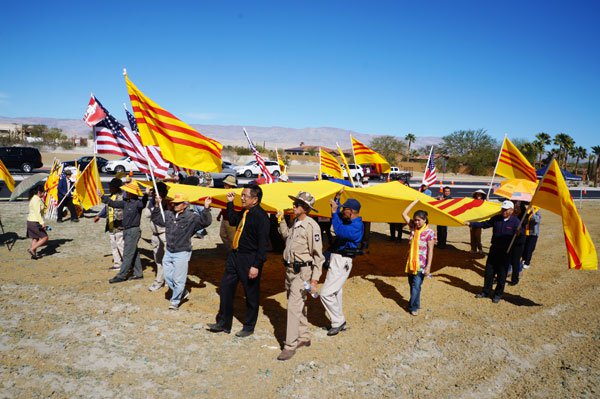 Ngoài cộng đồng Việt, còn có cộng đồng Lào, Cambodia tham gia biểu tình ở Sunnylands. (Hình: Người Việt)