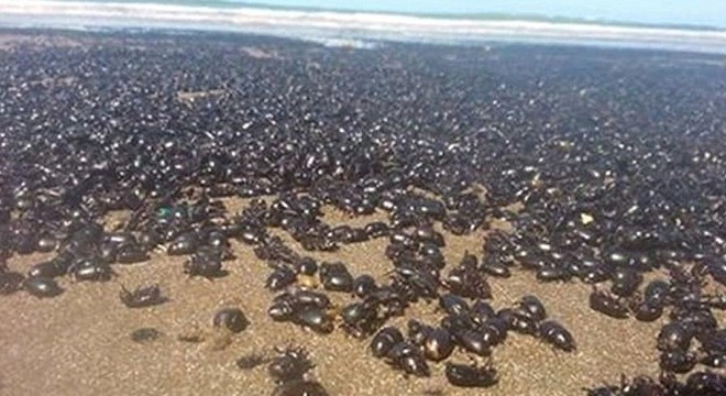 Người dân địa phương gần khu resort Mar de Ajo cách thủ đô Buenos Aires (Argentina) cảm thấy rùng mình khi chứng kiến hàng triệu con bọ đen đang bò kín bờ biển của họ. Không ai hiểu vì sao bọ đen lại xuất hiện, một số người đã đưa ra giải thuyết do biển có vấn đề nên ảnh hưởng tới cuộc sống của chúng.