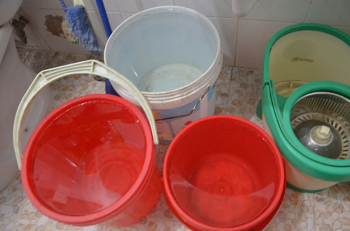 Người dân ở khu chung cư phải đi xin từng xô nước về dùng