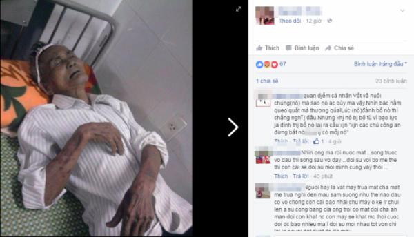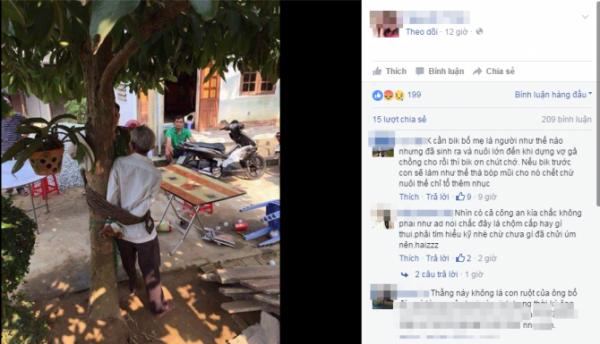 Hay như một bạn có facebook Đạpxíchlô Muanouvo Chởbồdạophố bức xúc lên tiếng: “tôi ko biết cái này đăng lên nhằm mục đích gj nhưng nhìn ông già bị cột vào gốc cây mà lòng đau xót. tôi chỉ ước 1 điều thôi … nếu có thằng con ông già đó bên cạnh tôi lúc này ..tôi sẽ chôn sống nó..cho dù fải đi tù”.