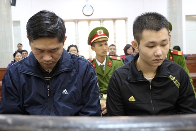 Bị cáo Tường và Khánh (phải) tại tòa.