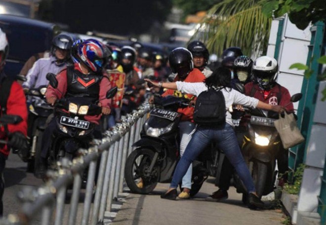 Vừa qua, một cô gái trẻ tại Indoensia đã có hành động khá sốc ngay giữa đường khiến cồng đồng mạng xôn xao. Cụ thể là cô gái này đã lao ra chặn các xe máy chạy sai luật đi lên vỉa hè dành cho người đi bộ ở thủ đô Jakarta. Hành động bất ngờ này của cô gái trẻ đã khiến nhiều người ngưỡng mộ.