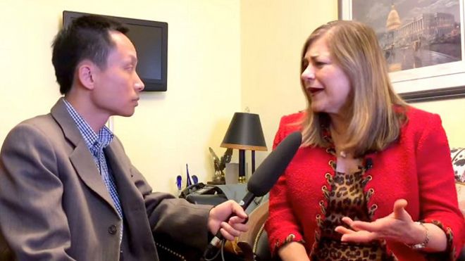 Dân biểu Loretta Sanchez: Tôi đã nói đi nói lại với đại sứ của chúng tôi ở Việt Nam, tôi đã nói chuyện với Bộ Ngoại giao, chúng tôi đã gửi thư cho Tổng thống Obama về vấn đề cụ thể này. Vì thế tôi biết tới nhiều trường hợp tù nhân chính trị, nhiều người đã ở tù lâu rồi và chúng tôi cố gắng để người thân của họ có thể vào thăm. Chúng tôi vẫn tiếp tục đấu tranh cho họ.