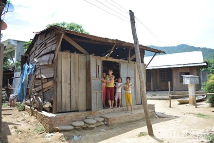Cách đó không xa là nhà của chị Thúy. Trận mưa đá vừa xảy ra vào đầu tháng 5 khiến ngôi nhà càng xuống cấp nghiêm trọng và có thể đổ sập bất cứ lúc nào. Bên trong căn nhà chẳng có giá trị ngoài chiếc tivi cũ. Chỉ lên mái tôn chi chít những lỗ thủng chị Thúy buồn rầu cho biết: “Trận mưa đá làm mái tôn nhà tôi bị hư hỏng nặng nhưng chưa có tiền sửa. Tiền ăn hàng ngày đã khó rồi lấy tiền đâu mà sửa nhà. Vừa rồi túng thiếu quá không còn cách nào khác tôi đành bán tóc để lấy tiền đi chợ và lo cho các con”.