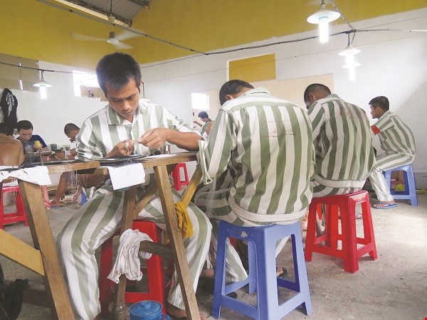 Phạm nhân Kim So Phia bên tổ sản xuất tự quản của mình