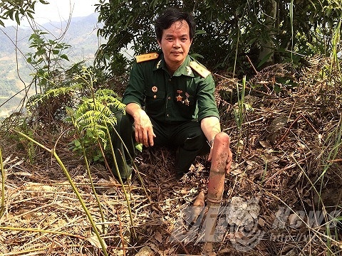 Cựu binh Phạm Xuân Thanh tại vị trí có căn hầm mà năm xưa ông chốt giữ