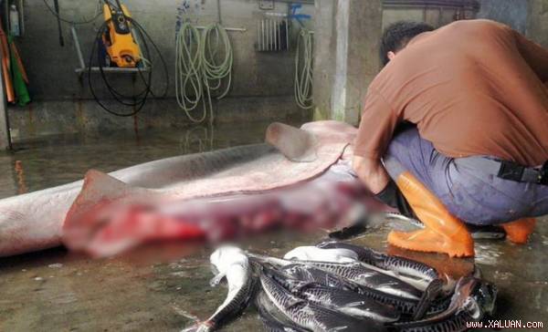 Ngày 15/6, một con cá mập dài 3,7m, nặng 200kg với cái bụng to tròn đã mắc bị vào lưới ở khu vực Đài Đông Trường Tân. Khi xác định được "sản phụ" cá mập này đang ở trong tình trạng chuẩn bị "vỡ chum", các ngư dân đã phải hết sức cẩn thận đưa nó lên bờ và lập tức tiến hành phẫu thuật.