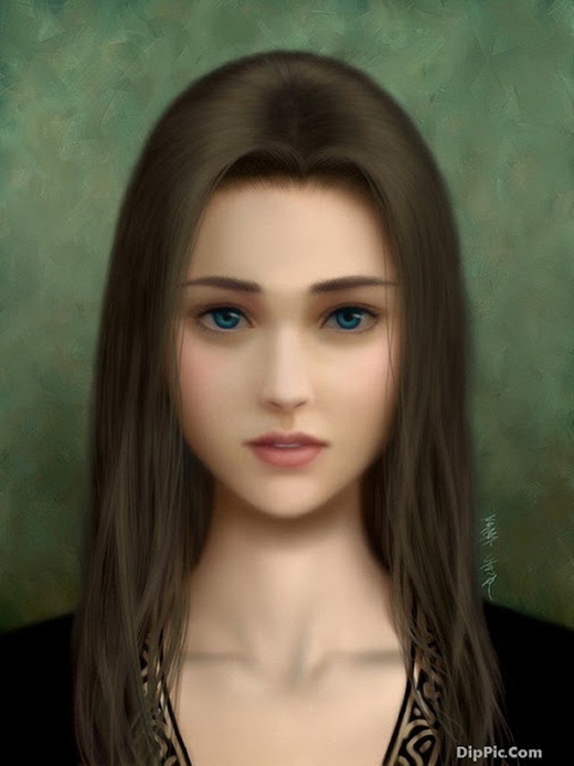 Người vợ hiện lên trong bức tranh với vẻ đẹp huyền bí và đầy ám ảnh, đặc biệt là đôi mắt. Nó xanh biếc và sâu thăm thẳm. Đôi mắt gợi lên buồn ai oán của cuộc tình đau khổ giữa 2 vợ chồng, đồng thời là nỗi thất vọng của người vợ khi bắt gặp chồng mình ngoại tình.