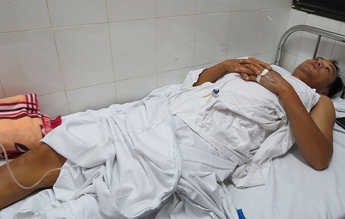 Bệnh nhân Thảo đang điều trị tại Bệnh viện Việt Đức sau ca mổ nhầm chân. Ảnh: Lê Nga.
