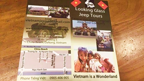 Trước đó trên mạng xã hội chia sẻ tấm poster của công ty này quảng cáo các điểm tham quan du lịch Đà Nẵng bằng xe jeep ghi bởi 2 thứ tiếng Việt và Trung Quốc.