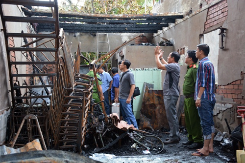 Ít phút sau, lực lượng phòng cháy chữa cháy có mặt. Gần chục chiến sĩ phải bơm nước từ mái nhà xuống dâp lửa. “Lúc ấy bên trong tối đen đầy khói, và chỉ có một người phụ nữ chạy thoát ra”, anh Khanh hàng xóm tham gia chữa cháy cho biết.