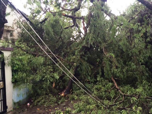 Tương tự trên Nguyễn Văn Tăng (phường Long Thạnh Mỹ) hàng loạt cây xanh bật gốc, nhiều căn nhà tốc mái hư hỏng nặng, tôn lợp mái bay tứ tung, dính vào đường dây điện...làm cả khu vực bị cúp điện, cuộc sống hàng nghìn hộ dân đảo lộn.