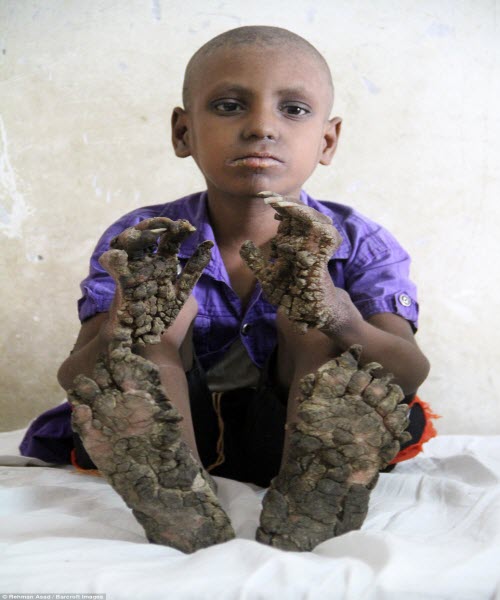 Một cậu bé 7 tuổi ở Bangladesh do mắc hội chứng người cây nên bàn tay và bàn chân bị chai sần, nứt nẻ với các u bướu khác thường. Hội chứng này khiến tay chân của cậu bé trông như chùm rễ cây và ảnh hưởng nặng nề tới cuộc sống hàng ngày của em.