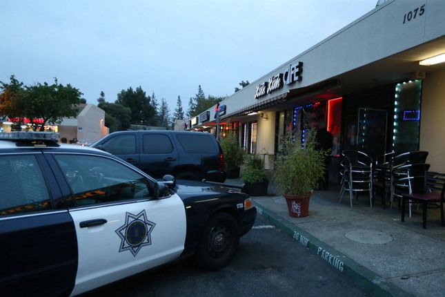 Hiện trường quán cà phê Xinh Xinh tại San Jose khi bị cảnh sát đột kích và thu giữ các máy đánh bạc trái phép - Ảnh: The Mercury News