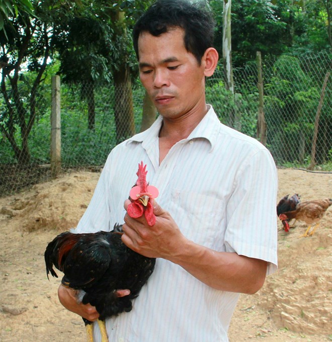 Anh Tư cho biết, bắt đầu công việc chăn nuôi gà từ năm 2008. Với việc nuôi gà tập trung số lượng lớn nên thường xuất hiện cảnh gà chọi nhau, cắn lông nhau khiến gà bị trọc lông vùng lưng, cổ, đầu. Việc này không những ảnh hưởng đến sự phát triển của gà mà gà còn bị thương lái mua ép giá khi xuất chuồng.