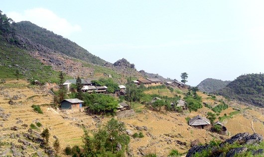 Bản Sán Séo Tỷ là những ngôi nhà nằm san sát trên các sườn đồi