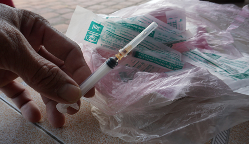 Theo anh H., khoảng 11 giờ 30 ngày 30-8, con gái anh trên đường về nhà, khi còn cách nhà vài trăm mét, cháu T. trông thấy 4 thanh niên đang dựng xe máy, dùng kim tiêm chích ma túy bên vệ đường, nên em la hét rồi bỏ chạy. Thấy vậy, nhóm thanh niên sợ bị lộ nên đã chạy tới khống chế, nhưng cháu T. hoảng sợ đã la hét và bị 1 tên trong nhóm dùng kim tiêm đâm mạnh vào cánh tay trái rồi lên xe bỏ chạy.