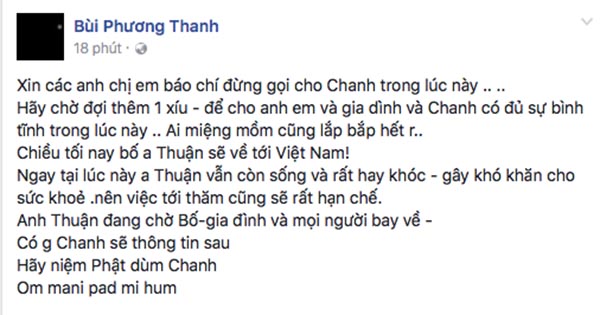 Ca sĩ Minh Thuận suy sụp, cứ khóc hoài, mong cha từ Mỹ bay về