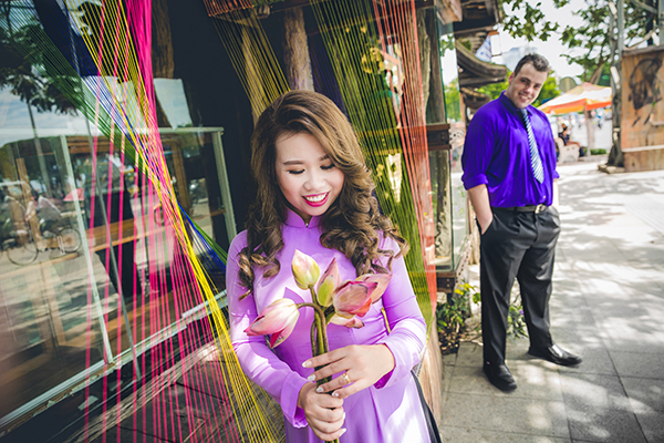 Bộ ảnh cưới được thực hiện ở Cam Ranh của cô dâu Việt 25 tuổi, giáo viên dạy tiếng Anh và chàng rể ngoại 32 tuổi đang làm việc tại một công ty nước giải khát ở Australia không chỉ đặc biệt bởi cuộc hôn nhân của hai người mang hai quốc tịch mà còn đặc biệt bởi cách khơi gợi niềm hạnh phúc của họ trong mỗi bức ảnh.