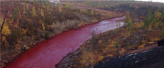 Mới đây, người dân tại thành phố Norilsk, Nga đã chia sẻ rất nhiều hình ảnh chụp con sông Daldykan bất ngờ chuyển màu đỏ tươi như màu máu. Hiện chính quyền vẫn chưa đưa ra kết luận nguyên nhân của tình trạng trên nhưng nhiều người dân cho rằng đây là do bị ô nhiễm chất độc từ các nhà máy ở thượng nguồn.