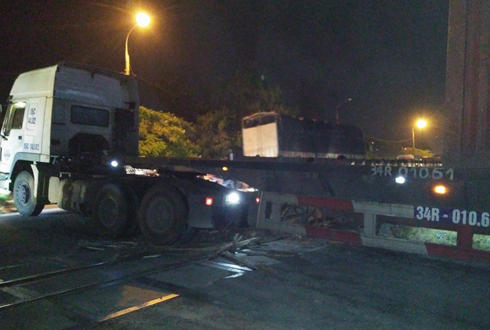 Xe container nằm vắt ngang đường sắt tối 21/9