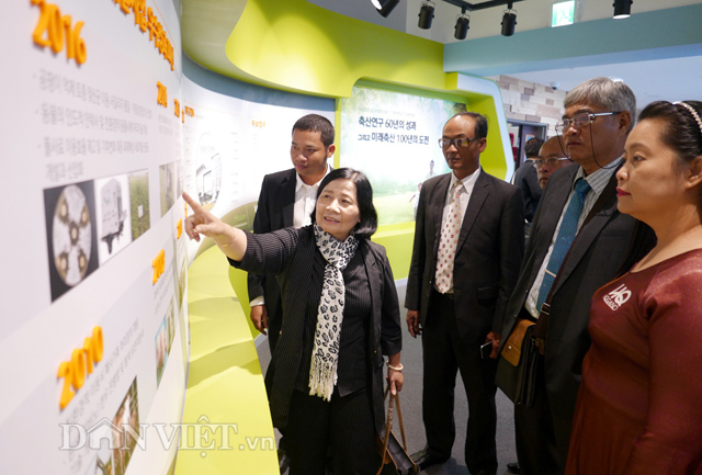 Cùng ngày, đoàn nông dân Việt Nam xuất sắc cũng đă đến thăm Viện Nghiên cứu động vật nuôi và Viện Nghiên cứu rau củ quả. Các thành viên của đoàn nông dân Việt Nam xuất sắc chủ yếu trong các lĩnh vực chăn nuôi, trồng cây, ăn trái… nên rất quan tâm đến mô h́nh và kỹ thuật của nông nghiệp Hàn Quốc.