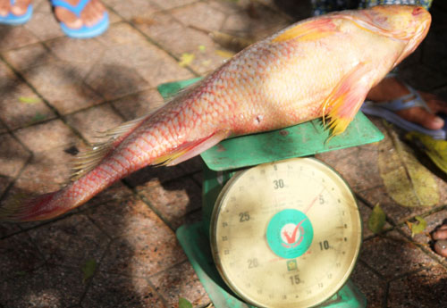Đưa lên mặt nước không bao lâu thì con cá chết và được ông Hiệp ướp đá. Hiện có một số người đã đến liên hệ ra giá mua con cá này nhưng ông Hiệp chưa đồng ý bán.